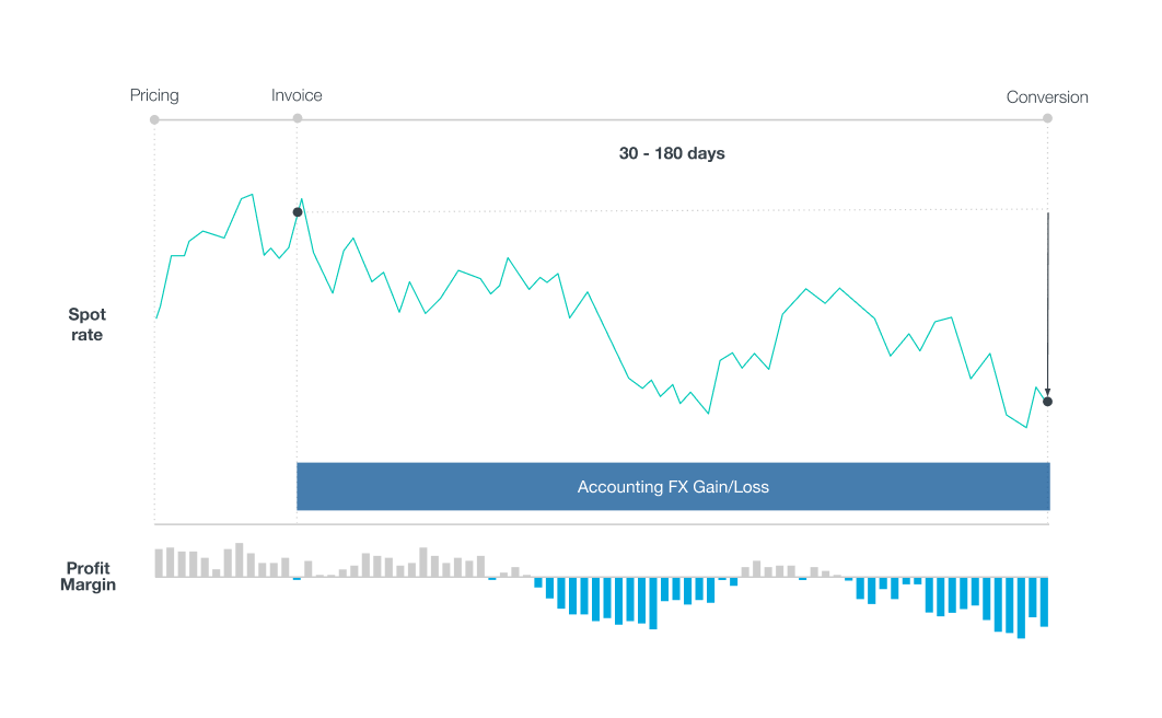 On the one hand, hedging at arbitrarily set dates does not completely remove FX gains and losses due to the time lapse between the moment the exposure materialises and the risk mitigation exercise.